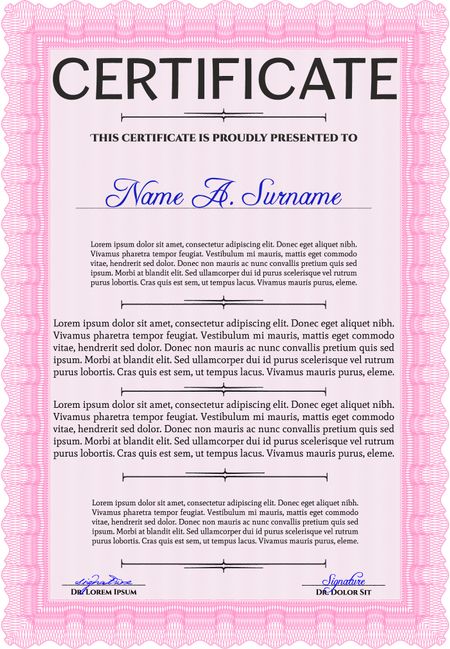 Pink Certificate template. Printer friendly. Nice design. Detailed.