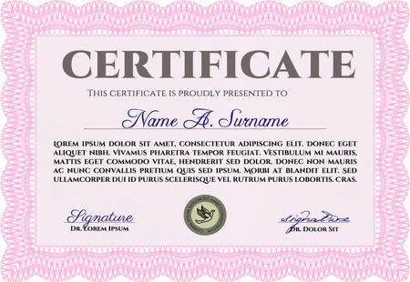 Pink Certificatem diplmoa or award template. With guilloche pattern. Design template. Money style design.