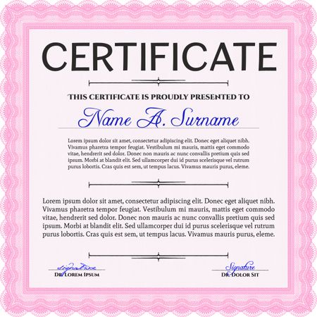 Pink Diploma template. With background. Border, frame. Excellent design.