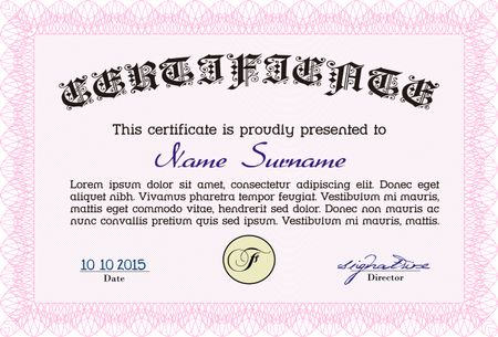 Pink Sample Certificate. With linear background. Frame certificate template Vector. Modern design.