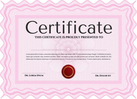 Pink Sample Certificate. Vector pattern that is used in money and certificate. With quality background. Artistry design.
