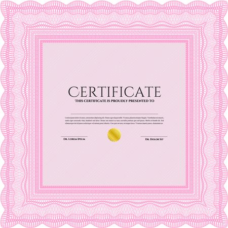 Pink Sample Diploma. Border, frame.With complex background. Nice design.