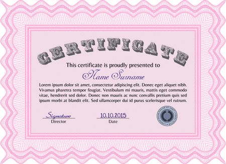 Pink Vector certificate. Customizable, Easy to edit and change colors.