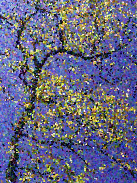 Pointillized multicolored abstract of tall deciduous tree with changing leaves in autumn