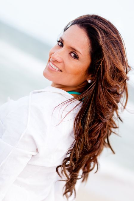 Portrait of a beautiful latin woman at the beach