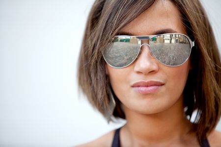 Portrait of a beautiful woman wearing sunglasses