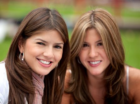 Portrait of a couple of beautiful girls smiling outdoors