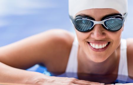 Portrait of a female swimmer smiling in the pool