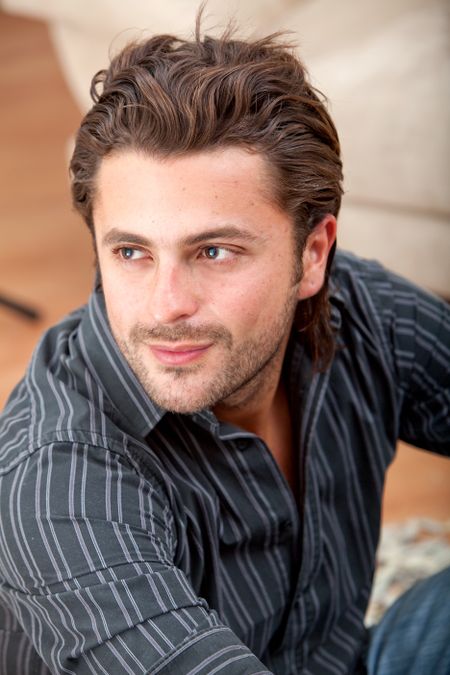 Portrait of a handsome man sitting on the floor