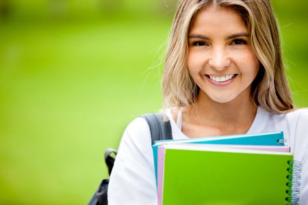 Portrait of a happy female student smiling outdoors