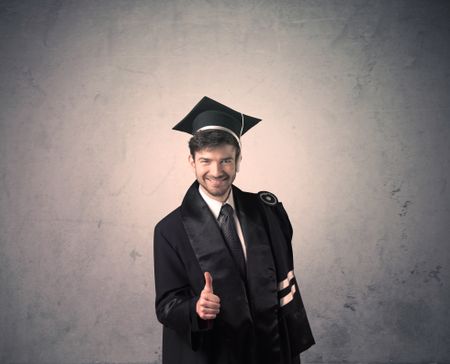 Portrait of a happy young graduate student on grungy background