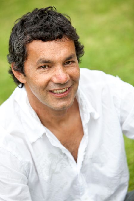 Portrait of a man smiling outdoors