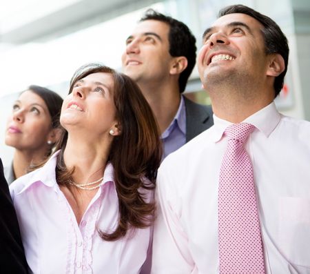 Portrait of a successful business team looking up