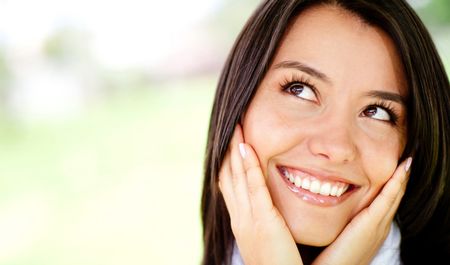 Portrait of a thoughtful woman looking up - outdoors