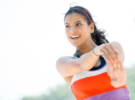 Portrait of a woman doing stretching exercises outdoors
