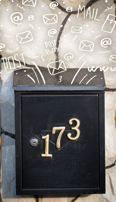 Postbox with white hand drawn mail icons