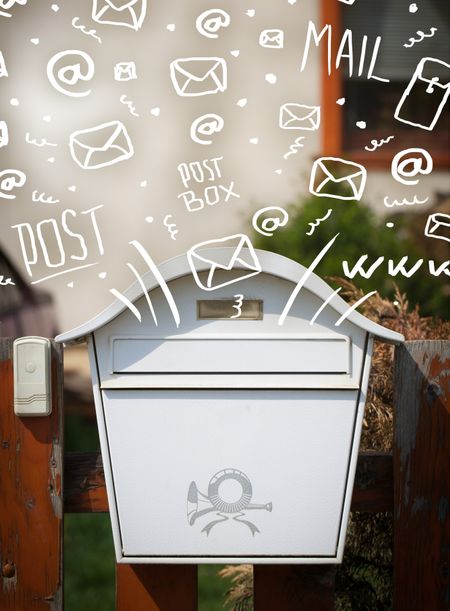 Postbox with white hand drawn mail icons