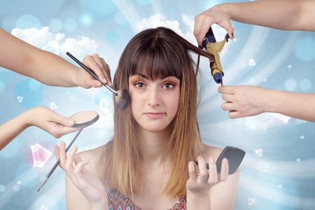 Pretty girl portrait prepare with diamonds and cloudy wallpaper