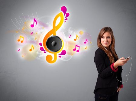 pretty girl singing and listening to music with musical notes getting out of her mouth
