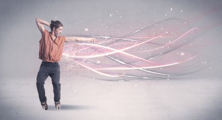 A pretty hip hop dancer dancing contemporary dance illustrated with glowing motion lines in the background concept.