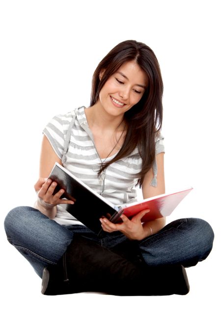 Pretty student studying isolated over a white background