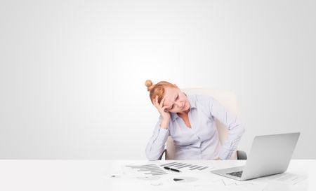 Pretty young businesswoman with plain white copy space