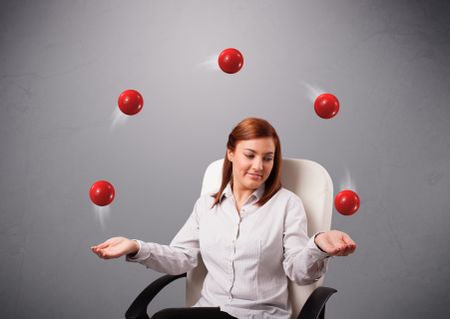 pretty young girl sitting and juggling with red balls