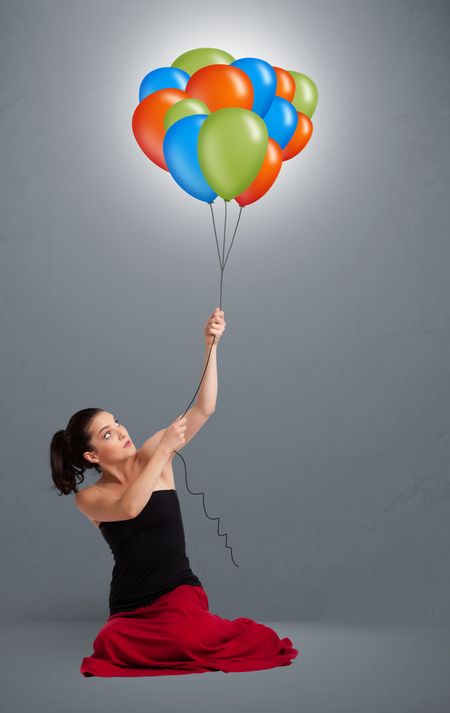 Pretty young woman holding colorful balloons