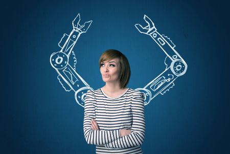 Pretty young woman with robotic arms concept
