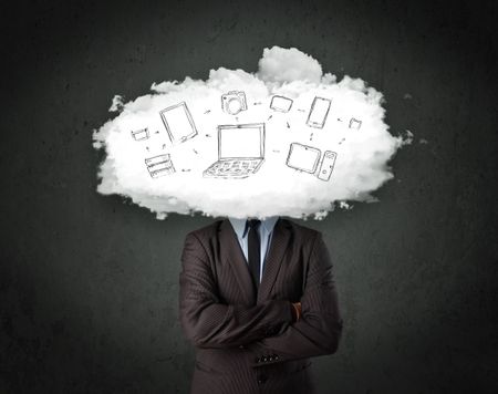 Professional business man with cloud network head concept