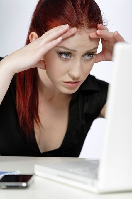 Professional woman showing concern at work using her laptop