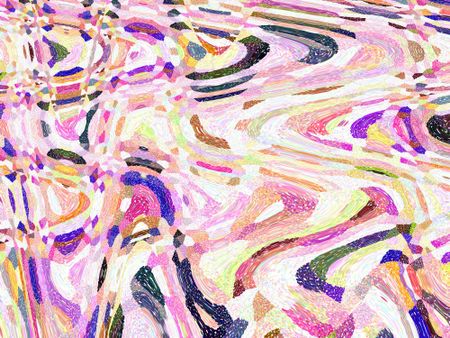 Psychedelic kaleidoscopic multicolored abstract of swirly sine waves with a pointillist "snow" effect