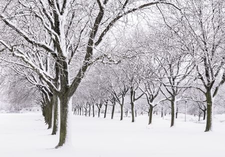 Quiet avenue of trees after a snowstorm: An aspect of winter more agreeable to many than what they often see on newscasts