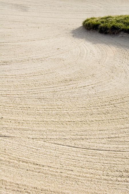 Rake marks in sand of fairway bunker on golf course