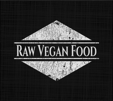 Raw Vegan Food chalkboard emblem written on a blackboard