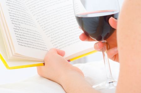 Reading book with red wine