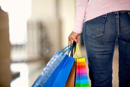 Rear view of a woman with shopping bags in a mall