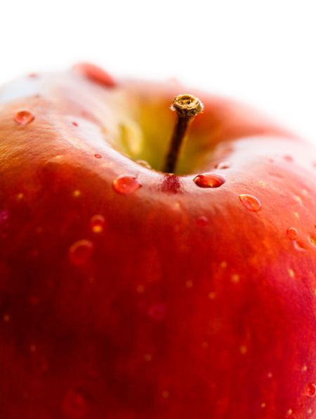 red apple close up with water drops isolated over white
