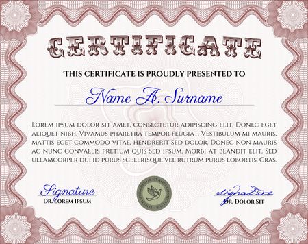 Red certificate, diploma or coupon template