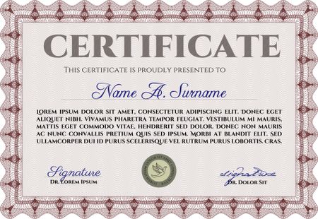 Red certificate or diploma frame with sample text.