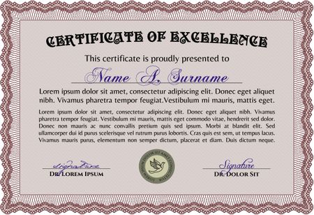 Red Classic Certificate template. With great quality guilloche pattern. Money Pattern. Award.