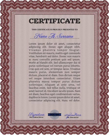 Red Diploma template. Excellent design. With complex background. Vector illustration.