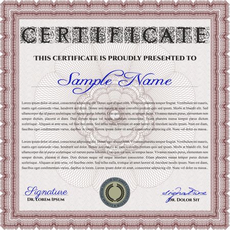 Red Diploma template. Lovely design. Vector illustration. With complex background.