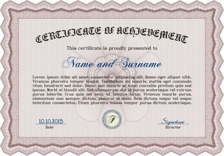 Red Diploma template. Vector illustration. With complex background. Excellent design.