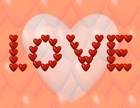 Red Hearts forming the word, love