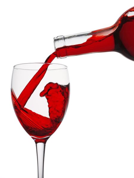 Red wine being poured into a glass from a bottle