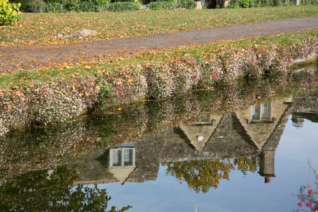 Reflection of House in River; Cotswold Village; Cheltenham; England; UK