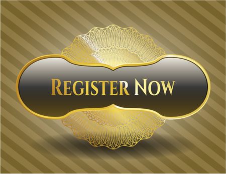 Register Now gold shiny badge