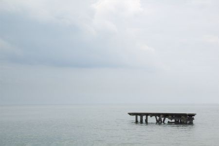 Remains of old dock in lake - calm before the storm