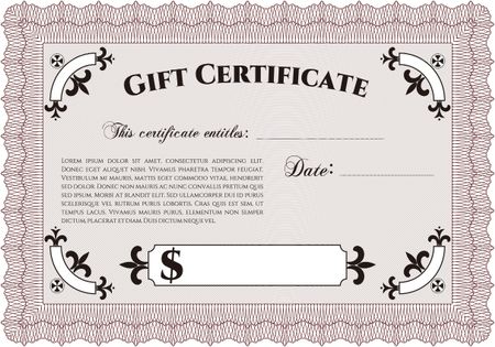 Retro Gift Certificate template. Nice design. With guilloche pattern and background. Detailed.